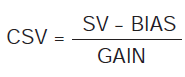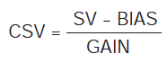 В случае выхода с фиксацией значение задания (SV) преобразуется и устанавливается в качестве значения задания при каскадном управлении (CSV) в соответствии со следующей формулой: