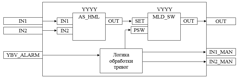 Блок YYYY базового типа AS_HML используется в качестве селектора сигналов с выбором максимального/среднего/минимального значения в зависимости от конфигурационного параметра CONFIG.TYPE_SELECT.
