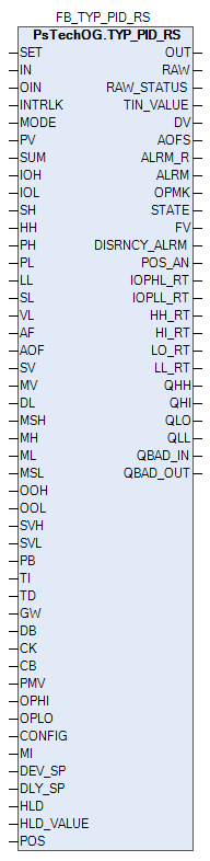 Функциональный блок TYP_PID_RS выполнен на основе базового функционального блока M_PID и, соответственно, наследует его функции.