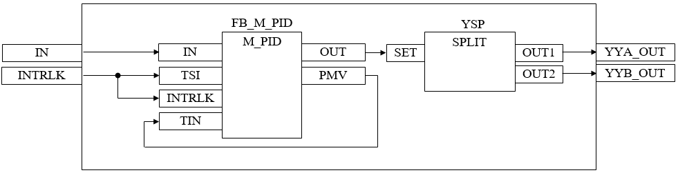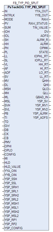 Функциональный блок TYP_PID_SPLIT выполнен на основе базового функционального блока M_PID и, соответственно, наследует его функции.