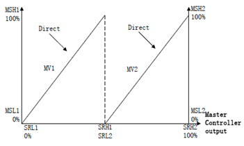Регулирующие клапаны, подключенные к выходам MV1 и MV2, не могут управляться индивидуально оператором HMI, а только через вышестоящий орган управления (например, ПИД-регулятор) в соответствии с обработкой, направлением и соответствующим рабочим диапазоном MV1 и MV2 (нижний предел и верхний предел).