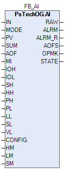Технологический функциональный блок AI выполнен на основе базового функционального блока PVI и, соответственно, наследует его функции.