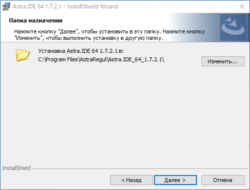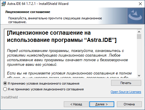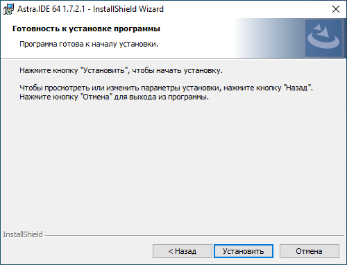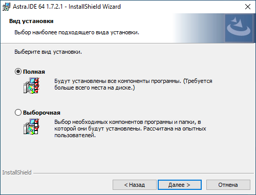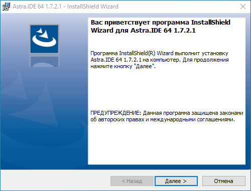 1. Запустите файл Astra.IDE 64 1.7.2.1.exe от имени Администратора. Откроется мастер установки.
