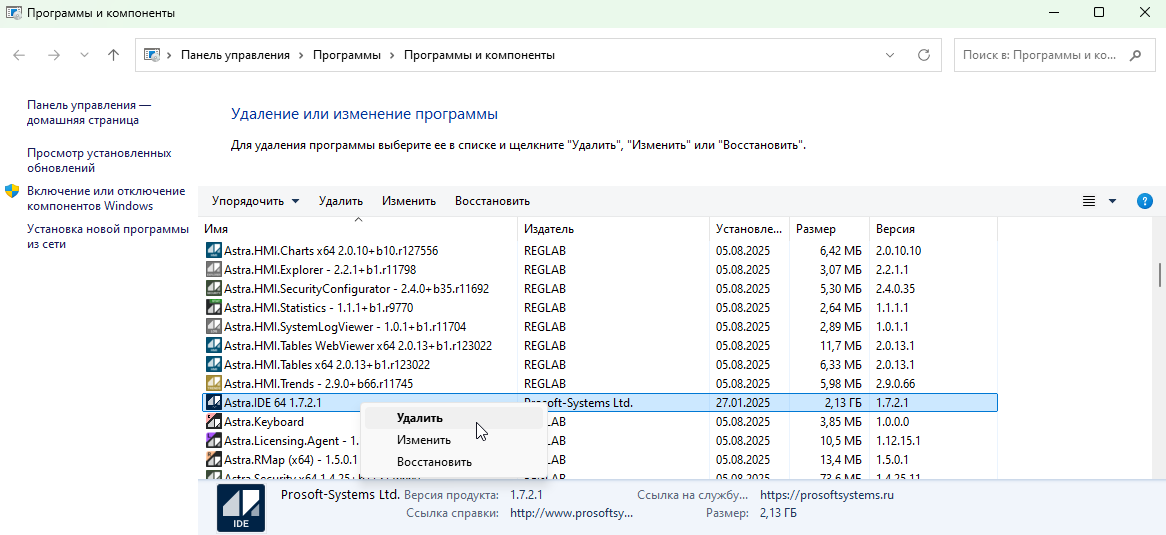 1. Перейдите в "Программы и компоненты", выберите в контекстном меню программного компонента команду "Удалить".