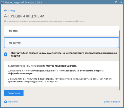 5. Перейдите на компьютер с доступом в Интернет и запустите приложение Мастер лицензий Guardant.