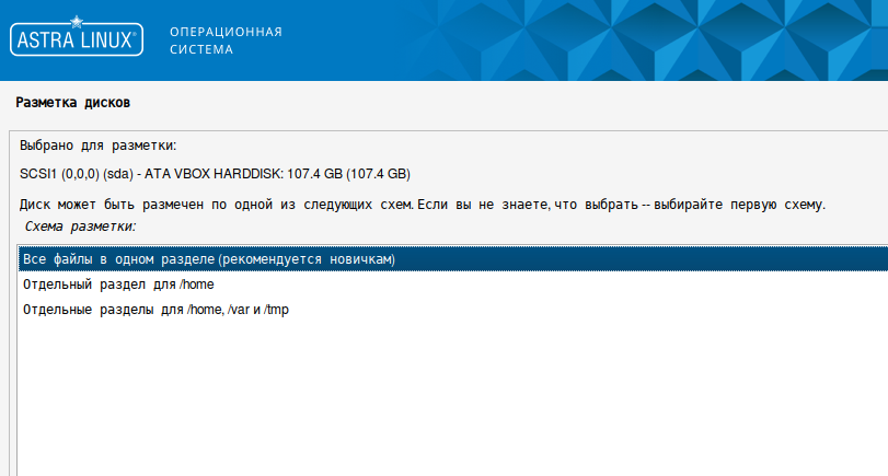 13. Выберите схему разметки диска "Все файлы в одном разделе (рекомендуется новичкам)" и нажмите кнопку "Продолжить".