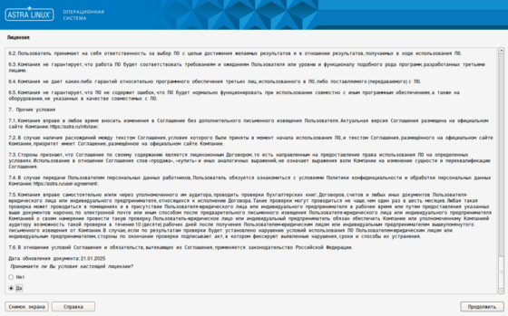 2. Прочитайте лицензионное соглашение, в конце выберите "Да" и нажмите кнопку "Продолжить".