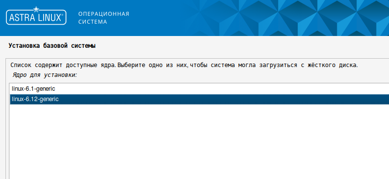 17. Выберите последнюю доступную версию ядра ОС и нажмите кнопку "Продолжить".