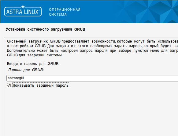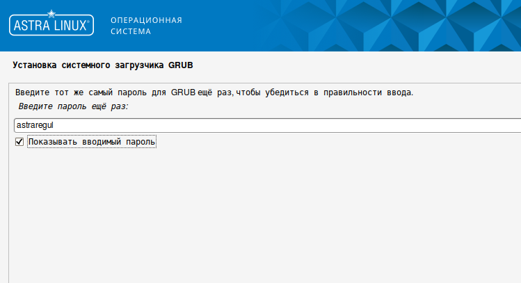 23. Введите пароль для системного загрузчика и нажмите кнопку "Продолжить".