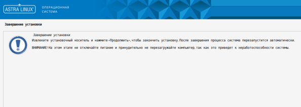 25. Для правильного завершения установки извлеките из ПК загрузочный Flash-накопитель и нажмите кнопку "Продолжить".