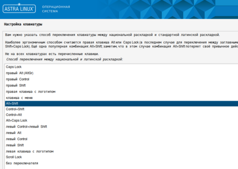 3. Ознакомьтесь с рекомендациями менеджера установки, выберите удобный способ переключения раскладки клавиатуры и нажмите кнопку "Продолжить".