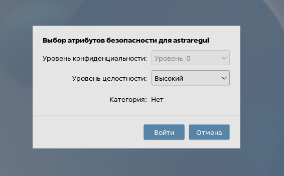 29. Выберите в выпадающем списке "Уровень целостности" - "Высокий" и нажмите кнопку "Войти".