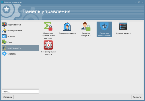 9. Перейдите в группу "Безопасность". Откройте раздел "Политика безопасности", режим графического киоска.