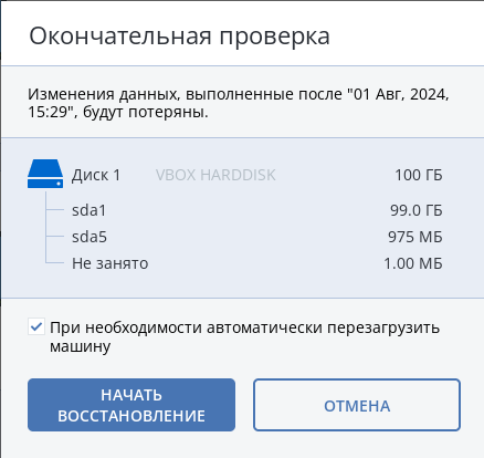 5. Восстановление считается успешным, если состояние машины стало "ОК".