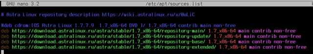 2. Если строки с источниками интернет репозиториев закомментированы, то необходимо их расскоментировать, затем сохранить и выйти из файла.