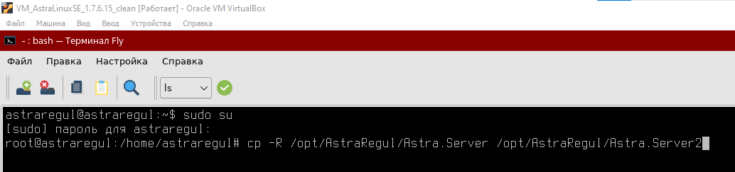 1. Откройте терминал и скопируйте существующую папку Astra.Server командой: