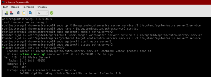 sudo cp /lib/systemd/system/astra.server.service /lib/systemd/system/astra.server2.service