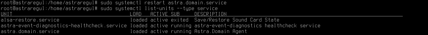3. Сохраните изменения в файле и перезапустите службу Astra.Domain.Agent воспользовавшись следующей командой: