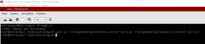 6. Откройте терминал и скопируйте unit-файл сервиса Astra.Server командой: