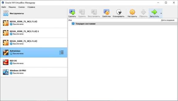 6. Выберите созданную виртуальную машину из списка в "Oracle VM VirtualBox Менеджер" и нажмите кнопку "Запустить".