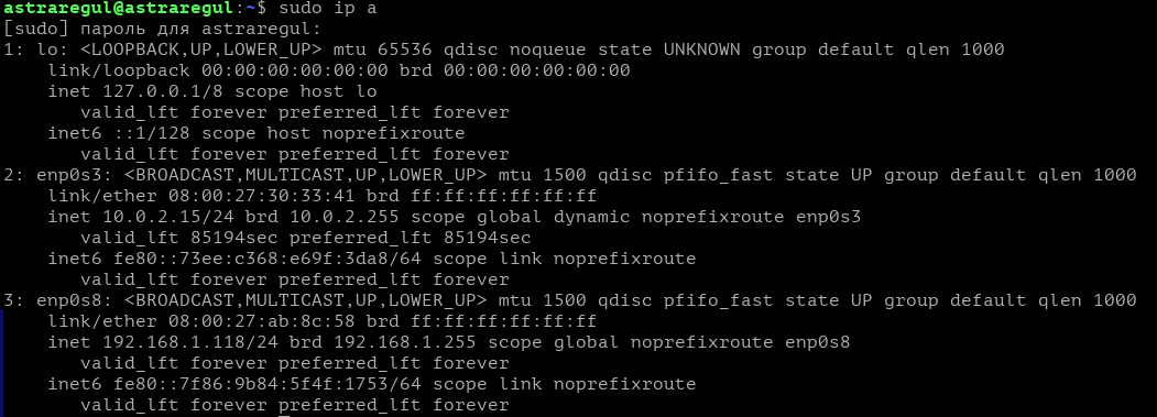 Необходимо посмотреть ip адрес сетевого адаптера (enp0s8).