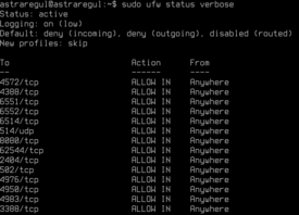 5. Для настройки правил для входящих подключений выполните команду, с указанием порта и протокола, для которых требуется разрешить подключение: