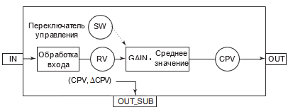 Расчетное значение выхода (CPV) представляет собой значение накопленного среднего, умноженное на коэффициент усиления (GAIN).
