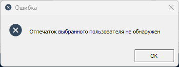 Отпечаток выбранного пользователя не обнаружен - данная ошибка возникает при использовании некорректного отпечатка.