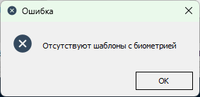 Отсутствует шаблон с биометрией - данная ошибка возникает при отсутствии отпечатка пальца пользователя в системе.