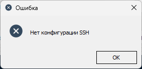 Нет конфигурации SSH - данная ошибка возникает при отсутствии конфигурации и подключения к серверу SSH.