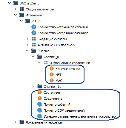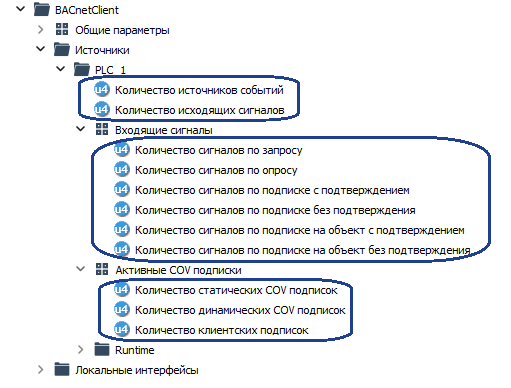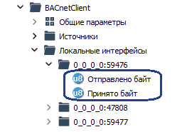 Для просмотра параметров статистики модуля подключитесь к Astra.Server приложением статистики и выберите в дереве модуль BACnet Клиент.