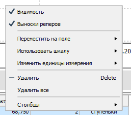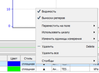 В точках пересечения реперной линии с графиком вы увидите выноски (если такая опция включена администратором при настройке экземпляра типа). В выносках содержатся значение сигнала в точке пересечения репера с графиком и качество значения. Вы можете скрыть выноски для отдельного графика. Перейдите в контекстное меню графика в легенде и снимите флаг Выноски реперов.