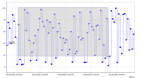 Вы можете просматривать значения и дополнительные данные по сигналам только в пределах хранимого временного интервала. При включении администратором подгрузки истории вы сможете увидеть все исторические данные по сигналам. Например, вы можете передвинуть или масштабировать график, чтобы увидеть данные за пределами хранимого интервала.