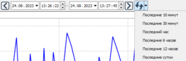 Масштабирование по горизонталиГрафики можно масштабировать по оси времени и/или по оси значений. По умолчанию включено масштабирование по обеим осям. Чтобы отключить масштабирование по оси времени, нажмите кнопку Масштабирование по горизонтали. Чтобы включить масштабирование по оси времени, повторно нажмите кнопку.