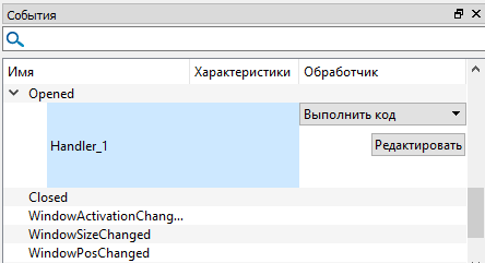 Событие при создании объекта Чтобы написать скрипт, выполняемый при наступлении какого-либо события, используйте обработчик типа Выполнить код. Для открытия редактора кода нажмите кнопку Редактировать.