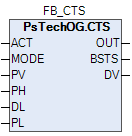 Программный блок счетчика (CTS) обновляет значение счета (PV) при получении команды выполнения счета (включения). Это также меняет состояние блока.