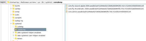 Дамп автоматически сохраняется в каталоге /var/lib/systemd/coredump