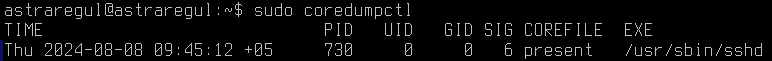 sudo coredumpctl