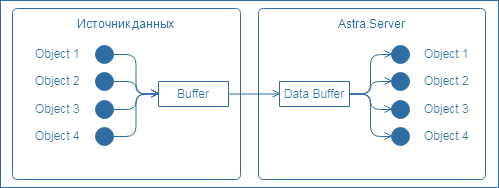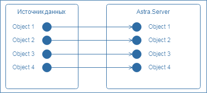 Сервер ввода/вывода Astra.Server получает от источников данные об объектах. Под объектами здесь понимаются отдельные параметры или структуры параметров. Для этого в Astra.Server создаётся описание соответствующих объектов: каждому параметру объекта соответствует отдельный сигнал, для которого настраивается получение значений данного параметра объекта от соответствующего источника.