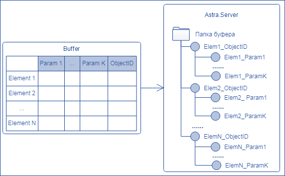 В Astra.Server получение данных из буфера источника может выполнять любой коммуникационный модуль. Чтобы получение данных из буфера источника и разбор полученных данных выполнялись независимо, в Astra.Server полученные данные записываются в специальную папку буфера: