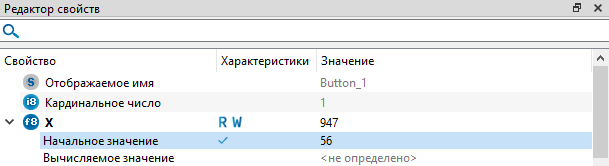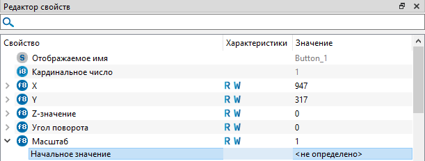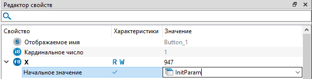 Начальные значения свойств объектов применяются в момент инициализации экранной формы в рантайме. Чтобы указать начальное значение свойства для объекта, введите параметр в поле Начальное значение.