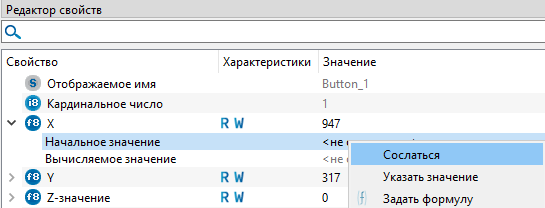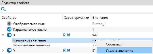 Для указания начального значения свойства в контекстном меню выберите команду Указать значение и введите нужное значение.