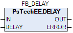 Если значение DELAY задано некорректно, выход ERROR устанавливается в TRUE. Если значение DELAY задано меньше времени цикла, то значение входа IN транслируется на выход OUT.