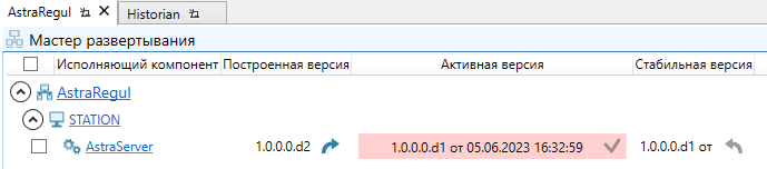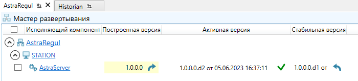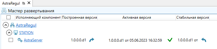 Активная версия – номер текущей конфигураций, работающей на Astra.Server. Версию активной конфигурации можно выбрать в выпадающем списке, доступном при нажатии на поле значения;