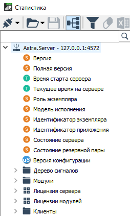 3.12.3.2.4. Дерево сигналов В дереве сигналов отображаются все подключенные сервера. Чтобы показать дерево сигналов, нажмите кнопку на панели инструментов. Чтобы скрыть дерево сигналов, повторно нажмите кнопку на панели инструментов.