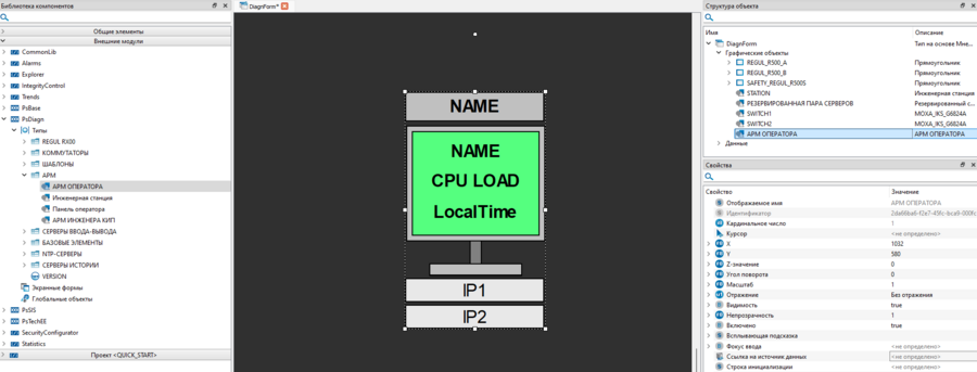 1. Добавьте на экранную форму "DiagnForm" тип "АРМ ОПЕРАТОРА" из библиотеки "PsDiagn", задайте имя "ARM1".