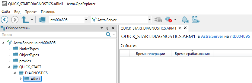 Полный путь до объекта можно посмотреть в утилите OpcExplorer: "QUICK_START" → "DIAGNOSTICS" → "ARM1".