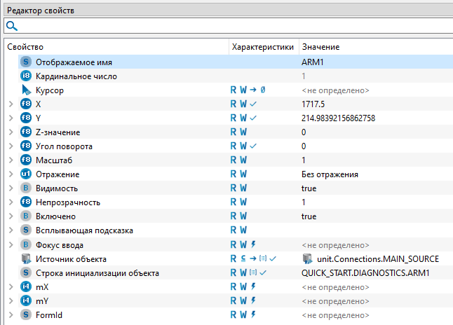 Строка инициализации объекта – здесь необходимо прописать путь до логического объекта "ARM1" на сервере AstraServer.