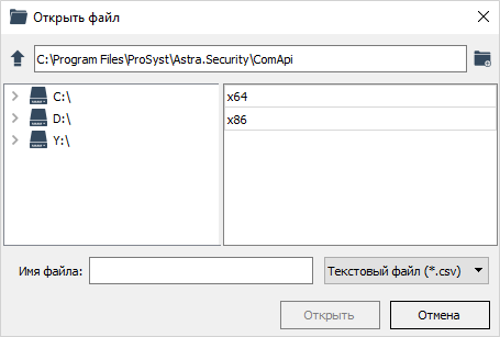 Окно просмотра файловой системы для открытия файлов.