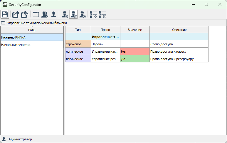 Вы можете изменять права роли, изменяя разрешающее значение. Для этого дважды кликните по значению логического права. Для логического права значение изменится автоматически на противоположное.